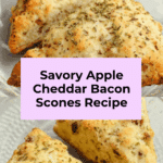 Keywords: Apple cheddar bacon scones, savory scones, air fryer scones, breakfast scones, quick scone recipe