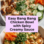 Keywords: Bang Bang Chicken Bowl, Asian chicken bowl, spicy chicken recipe, creamy bang bang sauce, easy dinner bowl, stir-fried vegetables, chicken breast recipe