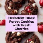 Black Forest Cookies combine the rich flavors of cocoa, white and semisweet chocolate, and fresh cherries for a decadent treat. These chewy cookies offer a delightful twist on the classic Black Forest dessert, perfect for any chocolate and cherry lover.
