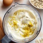 - Blend the Base: Add cottage cheese, rolled oats, egg, honey (or maple syrup), vanilla extract, lemon zest, baking powder, and salt to a blender or food processor. Pulse until smooth and thick, with the oats mostly broken down.