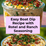 Boat Dip is a creamy, tangy, and slightly spicy dip blending cream cheese, sour cream, Rotel tomatoes with green chilies, cheddar cheese, and ranch seasoning. Perfectly chilled and versatile, it’s ideal for serving with chips, vegetables, or crackers at parties and gatherings.