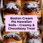 Boston Cream Pie Stuffed Hawaiian Rolls combine the fluffy sweetness of Hawaiian rolls with a creamy vanilla pastry filling and a rich chocolate glaze. This handheld dessert captures all the classic flavors of Boston Cream Pie in a convenient, crowd-pleasing format that’s perfect for brunch, parties, or elegant treats.