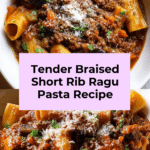 Keywords: Braised short ribs, ragu pasta, beef ragu, Italian pasta dish, slow cooked beef, pappardelle ragu, comfort food