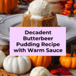 Butterbeer Pudding is a rich, comforting dessert inspired by the magical drink from the wizarding world. This warm, sticky treat combines the flavors of buttery butterscotch and ale, finished with a drizzle of warm sauce and vanilla ice cream. It’s perfect for cozy evenings or special occasions.