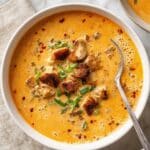 A creamy and flavorful Cajun Chicken Soup featuring a fragrant holy trinity vegetable base, tender Cajun-seasoned chicken, diced tomatoes, and a rich, creamy broth. This comforting soup balances spicy and smoky Cajun seasoning with savory vegetables and smooth cream, perfect for a hearty meal.