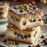 These Cannoli Squares are a delightful twist on the classic Italian dessert, featuring a creamy ricotta filling blended with powdered sugar, vanilla, cinnamon, and chocolate chips, all encased in flaky pre-made pie crusts. Topped with a glossy egg wash, a sprinkle of sugar, chopped pistachios, and maraschino cherries, this easy-to-make baked treat offers a rich, crunchy, and colorful finish that’s perfect for any occasion.