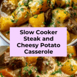 This slow cooker steak casserole is a comforting and flavorful dish perfect for busy days. Tender chunks of seared steak combine with creamy potatoes and melted cheddar cheese for a hearty meal everyone will love.