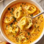 Store leftover soup in an airtight container in the refrigerator for up to 3 days. Reheat gently on the stove over low heat, stirring occasionally to prevent scorching. The tortellini may absorb some liquid when stored, so add a splash of milk or broth when reheating if needed.