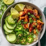 Chili Crisp Chicken Bowls are a vibrant and flavorful meal that combines tender, spicy chicken with a refreshing cucumber salad and hearty brown rice. This dish is perfect for home cooks looking for a fresh twist on an Asian-inspired bowl that’s easy to prepare and packed with bold flavors.