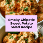 This Chipotle Sweet Potato Salad combines the natural sweetness of tender sweet potatoes with a smoky, spicy chipotle aioli for a flavorful, refreshing dish. Enhanced by jalapeño and red bell peppers and brightened with fresh cilantro and paprika, this salad is perfect served warm or chilled. The creamy smoky chipotle aioli, made with Greek yogurt and mayo, adds a deliciously zesty and cooling balance to the heat of the peppers, making it an irresistible side or snack.