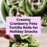 Keywords: Christmas appetizer, cranberry cream cheese roll, holiday snack, vegetarian finger food, tortilla roll-ups