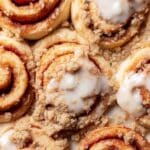 - Top and Bake: Sprinkle the crumb topping evenly over the risen rolls. Bake for 30-40 minutes until the tops are golden brown and the rolls are cooked through. Remove from oven and transfer the pan to a wire rack to cool slightly.