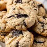 These Cookies ‘n Cream Peanut Butter Cookies combine the rich, nutty flavor of peanut butter with the crunch of chopped Oreos for a delightful treat. Easy to make with no chilling required, they bake up soft and chewy with a perfect criss-cross pattern on top. A crowd-pleasing dessert that’s perfect for any occasion.