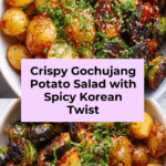 A deliciously crispy roasted baby potato salad tossed in a spicy, sweet, and umami-rich gochujang dressing, garnished with fresh green onions, toasted sesame seeds, cucumber, and optional kimchi or crispy shallots. This Korean-inspired side dish is versatile, served warm or chilled, perfect for BBQs, potlucks, or as a flavorful vegetarian option.