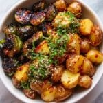 A deliciously crispy roasted baby potato salad tossed in a spicy, sweet, and umami-rich gochujang dressing, garnished with fresh green onions, toasted sesame seeds, cucumber, and optional kimchi or crispy shallots. This Korean-inspired side dish is versatile, served warm or chilled, perfect for BBQs, potlucks, or as a flavorful vegetarian option.