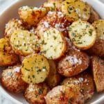 Keywords: roasted red potatoes, crispy potatoes, side dish, baked potatoes, garlic herb potatoes, Parmesan potatoes
