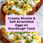 This Easy 6-Ingredient Egg and Ricotta Toast recipe offers a creamy, soft scrambled egg dish elevated with fresh ricotta cheese and chives, served atop toasted sourdough bread for a comforting and elegant breakfast or brunch option.