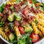 Keywords: BLT pasta salad, avocado pasta salad, creamy avocado dressing, bacon pasta salad, summer salad, easy lunch recipe, picnic salad