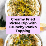 This Fried Pickle Dip with Ranch is a creamy, tangy, and herby appetizer featuring a smooth cream cheese and sour cream base mixed with dill pickles and ranch dressing. It is topped with a crispy, buttery shallot and panko breadcrumb topping that adds delightful crunch and flavor. Ready in just 20 minutes without any baking required, this dip pairs perfectly with potato chips or other dippers for a delicious and easy snack or party appetizer.