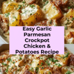 Garlic Parmesan Crockpot Chicken and Potatoes is a simple, comforting meal perfect for busy days. Tender chicken breasts and baby potatoes are slow-cooked together with fragrant garlic and savory Parmesan for a delicious one-pot dinner.