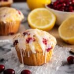 Keywords: lemon cranberry muffins, glazed muffins, citrus baked goods, breakfast muffins, cranberry recipes, lemon zest, glazed lemon muffins