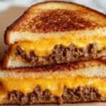Keywords: grilled cheese, patty melts, ground beef sandwich, comfort food, melty cheese sandwich