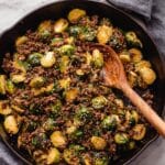 Keywords: ground beef, brussels sprouts, skillet recipe, healthy dinner, one pan meal, sweet chili sauce, low fat, quick dinner