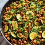 Ground Turkey Zucchini Chickpea Skillet is a quick and healthy one-pan meal featuring lean ground turkey, fresh zucchini, and protein-packed chickpeas, seasoned with warm spices like cumin and smoked paprika. This flavorful and nutritious dish is perfect for busy weeknights and can be served on its own or alongside rice or quinoa for a complete meal.