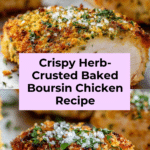 Herb-Crusted Baked Boursin Chicken features juicy, tender chicken breasts coated with a savory mixture of Boursin cheese, fresh herbs, and crispy panko breadcrumbs. This easy-to-make baked dish combines creamy, cheesy flavors with aromatic parsley, thyme, and rosemary, perfect for a flavorful weeknight dinner or special occasion.