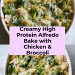 Keywords: high protein alfredo bake, chickpea pasta casserole, healthy alfredo recipe, chicken broccoli casserole, protein-packed dinner, creamy alfredo bake, cottage cheese alfredo