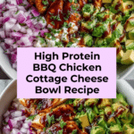 This High Protein BBQ Chicken Cottage Cheese Bowl combines tender shredded chicken coated in flavorful BBQ sauce with creamy cottage cheese and fresh toppings. Ready in just 15 minutes, it’s a satisfying and nutritious meal perfect for lunch or a quick dinner.