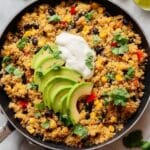 - Serve and Garnish: Serve the cheesy quinoa and black bean skillet hot, optionally topped with sliced avocado, chopped cilantro, green onions, and a dollop of Greek yogurt or sour cream for extra creaminess and freshness.