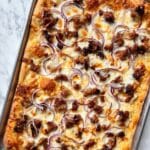 9. Repeat Layers: Continue layering sausage, onions, and alternating cheeses until all sausage is used, finishing with a final cheese layer on top.