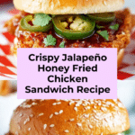 Keywords: Jalapeño honey, fried chicken sandwich, crispy chicken, spicy honey drizzle, buttermilk marinade, Cajun seasoning, comfort food, American sandwich, homemade fried chicken