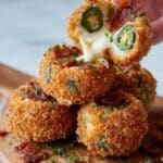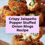 Jalapeño Popper Stuffed Onion Rings are a delicious and spicy appetizer featuring thick onion slices filled with a creamy, cheesy jalapeño mixture, breaded, and fried to golden perfection. These crispy snacks are perfect for parties or game days, offering a flavorful twist on classic onion rings with a fiery kick and rich, melty cheese filling.