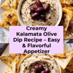 This Kalamata Olive Dip is a flavorful and easy appetizer perfect for any gathering. Creamy and tangy, it combines the robust taste of kalamata olives with smooth cream cheese. Serve it with pita chips or crackers for a delicious snack everyone will love.