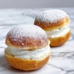 Store leftover donuts in an airtight container in the refrigerator for up to 2 days. Reheat briefly in a microwave or warm oven, but avoid prolonged heating to keep the cream fresh and the dough soft. For best taste, consume them the same day they’re made.