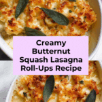 Keywords: lasagna roll-ups, butternut squash lasagna, baked pasta, vegetarian lasagna, gluten free pasta recipe, creamy béchamel, sage pasta dish
