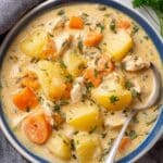 A comforting and hearty leftover turkey soup made with a savory vegetable base, tender potatoes, and chopped turkey, thickened with a creamy roux and milk. Perfect for using up leftover turkey and enjoying a warm, satisfying meal.