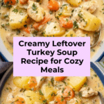 This comforting leftover turkey soup is a warm and hearty way to use up your cooked turkey. Packed with vegetables, tender potatoes, and a creamy thickened milk base, it’s the perfect dish for chilly days or a cozy family meal.