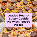 This Loaded Peanut Butter Cookie Pie is a rich and indulgent treat packed with creamy peanut butter, colorful sprinkles, Reese’s Pieces, and miniature peanut butter cups. It bakes into a thick, chewy cookie pie perfect for sharing or satisfying your peanut butter cravings.