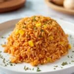 This flavorful Mexican Rice recipe is a delicious and colorful side dish featuring long grain white rice cooked with aromatic spices, tomato sauce, corn, and diced vegetables, creating a vibrant and hearty accompaniment to any Mexican-inspired meal.