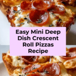 These Mini Deep Dish Crescent Roll Pizzas are perfect bite-sized snacks made by using crescent roll dough as the crust, filled with marinara sauce, mozzarella cheese, and pepperoni. They are quick to prepare, customizable, and ideal for gatherings or kids’ meals.