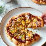 Keywords: naan pizza, easy pizza, barbecue chicken pizza, quick pizza recipe, naan bread pizza, homemade pizza