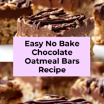 These No Bake Chocolate Oatmeal Bars are an easy, delicious treat with a rich combination of oats, chocolate, and peanut butter. Perfect for a quick dessert or snack, they require no baking and come together with just a few simple ingredients. The bars feature a layered texture with a buttery oat base, a smooth chocolate-peanut butter filling, and a final oat topping drizzled with chocolate. Refrigerate to set, then slice and enjoy a chewy, satisfying bar that’s sure to please chocolate and peanut butter lovers alike.