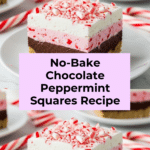 Keywords: no-bake dessert, chocolate peppermint squares, holiday dessert, layered dessert, peppermint candy, instant pudding dessert