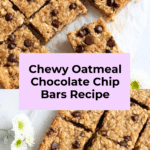 Deliciously chewy oatmeal chocolate chip bars made with a perfect blend of oats, brown sugar, and melted butter, studded with semi-sweet chocolate chips and finished with a sprinkle of sea salt for an irresistible sweet and salty treat.