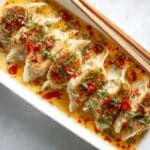 - Garnish and Serve: Garnish generously with fresh cilantro, sliced green onions, sesame seeds, and chili crunch. Serve warm and enjoy this comforting one-pan dumpling bake.