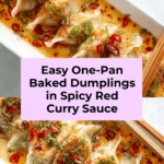 Experience a delicious twist on dumplings with this one-pan baked dumplings recipe in a rich red curry coconut sauce. It’s an easy, flavorful meal that combines simple ingredients into a comforting dish perfect for any night of the week.