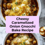 This Onion Gnocchi recipe features tender gnocchi cooked in a rich, caramelized onion and beef broth sauce, topped with melted Swiss or Gruyere cheese and baked to bubbly perfection. Served with toasted French bread, it’s a comforting and flavorful dish perfect for cozy dinners.